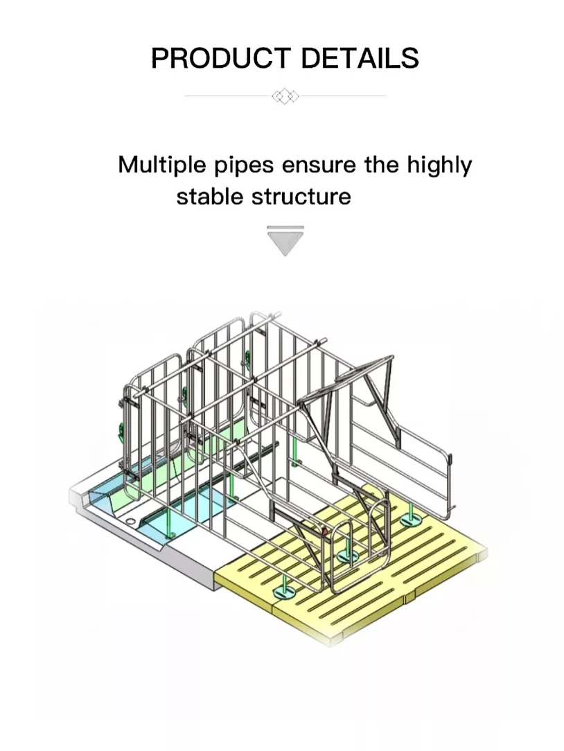1. विश्वसनीय कुंडी के साथ सुरक्षित सामने वाला लॉकिंग दरवाज़ा सूअर को भागने से रोकता है, जानवरों को चोट से बचाने के लिए गोल धातु के किनारों के साथ।